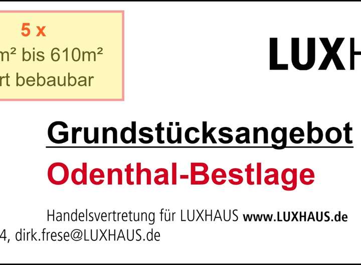 Zusätzlich zu diesem Grundstück stehen aktuell noch 4 weitere Grundstücke in Odenthal zur Verfügung - mit Grundstücksgrößen zwischen 558 m² und 610 m².