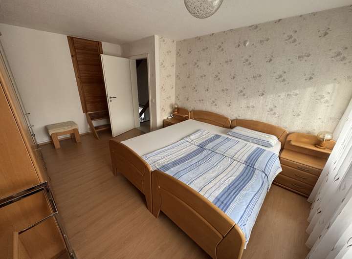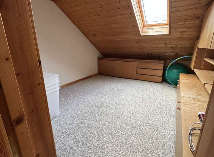 Das Obergeschoss umfasst ein Badezimmer mit Dusche sowie insgesamt vier weitere Zimmer, die flexibel als Schlafzimmer, Kinderzimmer, Arbeits- oder Hobbyräume genutzt werden können. Die Aufteilung eignet sich besonders für Familien oder Mieter mit Platzbedarf für Homeoffice oder individuelle Wohnkonzepte.