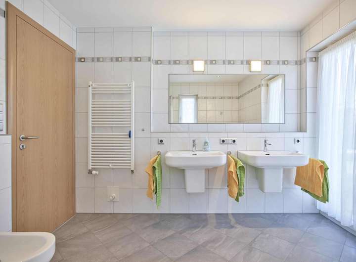 • Gasheizung (teilerneuert 2023), Fußbodenheizung im oberen Bad