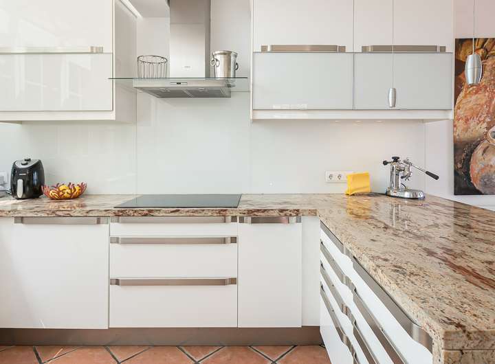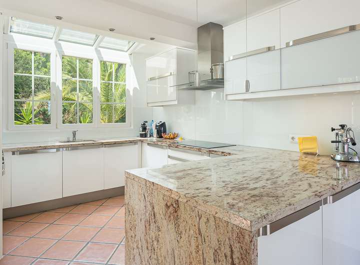 Das Anwesen befindet sich auf einem großzügigen Grundstück von ca. 775 m² und verfügt über eine Gesamtwohnfläche von ca. 231 m², die sich auf zwei Ebenen verteilt. Der Hauptwohnbereich befindet sich im Obergeschoss, während das Untergeschoss ein komplett unabhängiges Gästeapartment beherbergt. Das Obergeschoss empfängt Sie mit einem hellen und luftigen Wohn-Essbereich, der nahtlos in eine offene, voll ausgestattete Küche übergeht. Auf dieser Etage befinden sich außerdem ein Gäste-WC und ein geräumiges Hauptschlafzimmer mit eigenem Bad – alle mit spektakulärem Meerblick aus jedem Winkel.