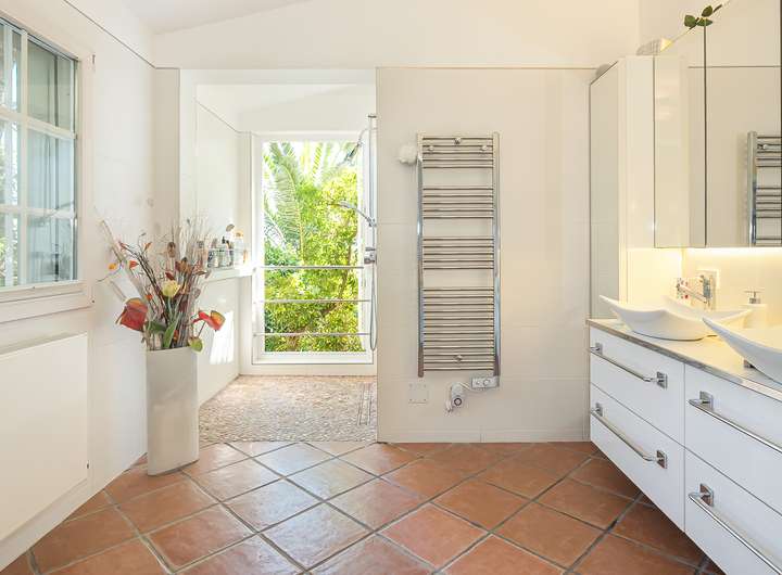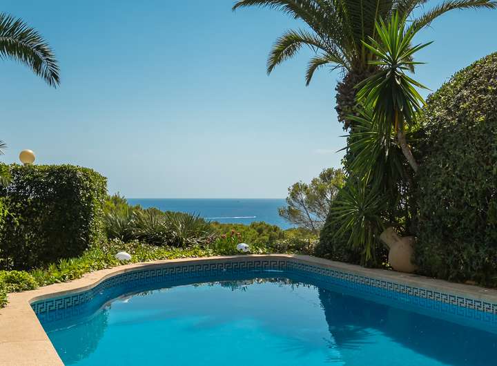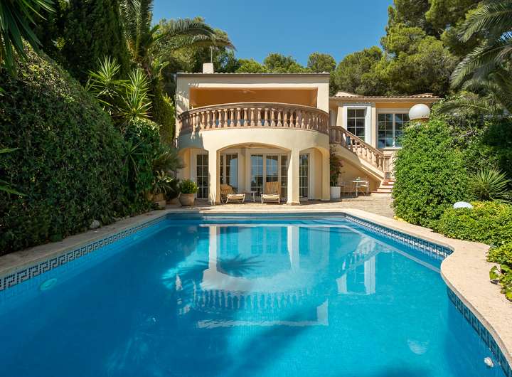 Atemberaubende Villa mit Panoramablick auf das Meer in ruhiger und dennoch zentraler Lage. Eingebettet in eine ruhige Wohngegend, nur fünf Gehminuten vom Meer entfernt, bietet diese außergewöhnliche Villa einen atemberaubenden Panoramablick und eine ideale Südlage für ganztägige Sonne auf den großzügigen Terrassen.