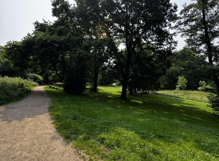 Eine riesige grüne Oase aus Streuobstwiesen, Liegewiesen, Spielplatz, Bach & einer extra Hundewiese, durchzogen von vielen Wegen (& ausreichenden Mülltonnen, was wir mal lobend erwähnen müssen), ein herrlicher Ort um dem Alltag zu entfliehen.