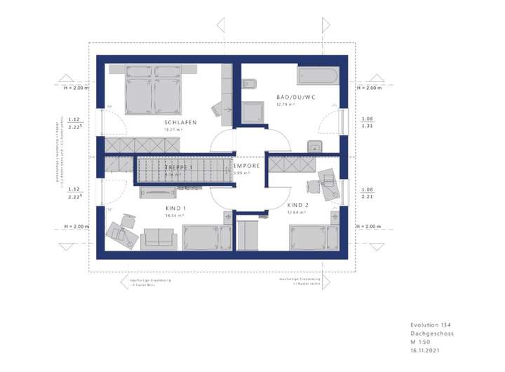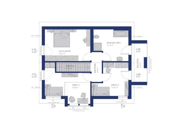 Ob Design-Balkon, Glas-Querhaus oder Flachdach-Quergiebel: Die Architektur-Bauteile verleihen Ihrem EVOLUTION 134 seinen ganz eigenen Stil. Der moderne und repräsentative Hauskörper fasziniert durch vielfältige Möglichkeiten, sein Erscheinungsbild mit den unterschiedlichen Architektur-Bauteilen vollkommen zu variieren. Innovativ: Diese Bezeichnung steht auch für den Grundriss. Die geradläufige Treppe, der Luftraum im Obergeschoss und der moderne Wohn-Essbereich mit Küche sind nur einige der besonderen Merkmale dieses Hauses. Denn auch im Obergeschoss hat das EVOLUTION 134 mit großen Räumen, zwei Kinderzimmern und Wellness-Bad richtig viel zu bieten.