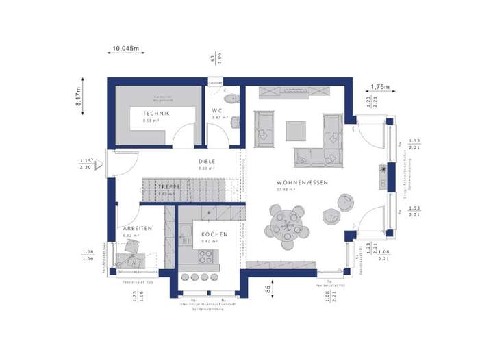 + Ausführung als Effizienzhaus 55, nach Ihrer Wahl selbstverständlich auch als Effizienzhaus 40 oder 40 plus,