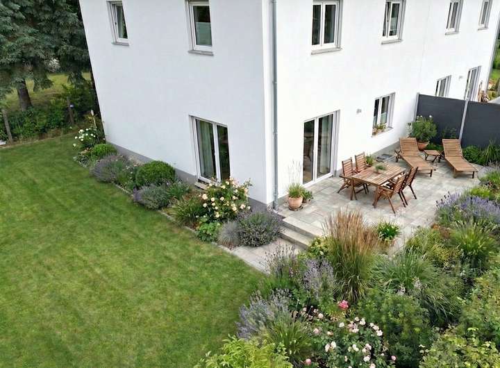 Der eigene Gartenanteil bietet genügend Freiraum für Erholung oder Spiel. Die Lage in Ladeburg kombiniert ländliche Ruhe mit der schnellen Erreichbarkeit der Infrastruktur von Bernau.