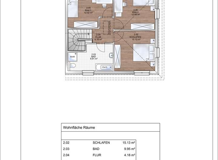• Grundfläche der Doppelhaushälfte: 8,00 m x 9,00 m