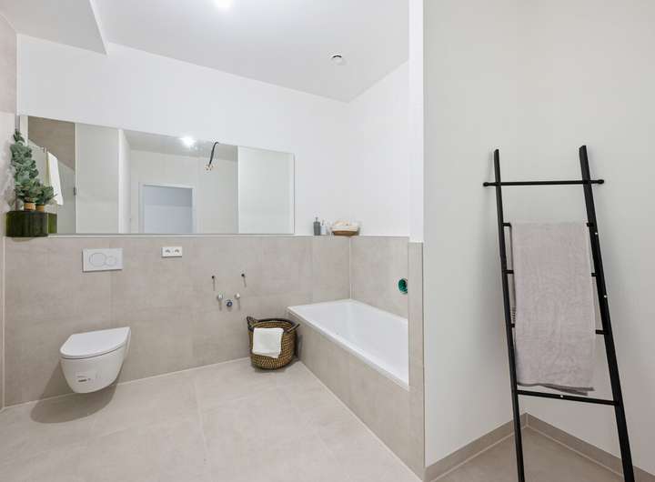 Der Balkon mit Natursteinbelag wird schnell zum persönlichen Rückzugsort: ein Platz für den ersten Kaffee am Morgen oder entspannte Abende. Hochwertiges Echtholzparkett, großformatige Fliesen und ein zeitloses Schalterprogramm verleihen der Wohnung eine klare, elegante Linie. Das Wohlfühlbad mit elektrischem Handtuchheizkörper sowie das zusätzliche Gäste-WC bieten Komfort für den Alltag.