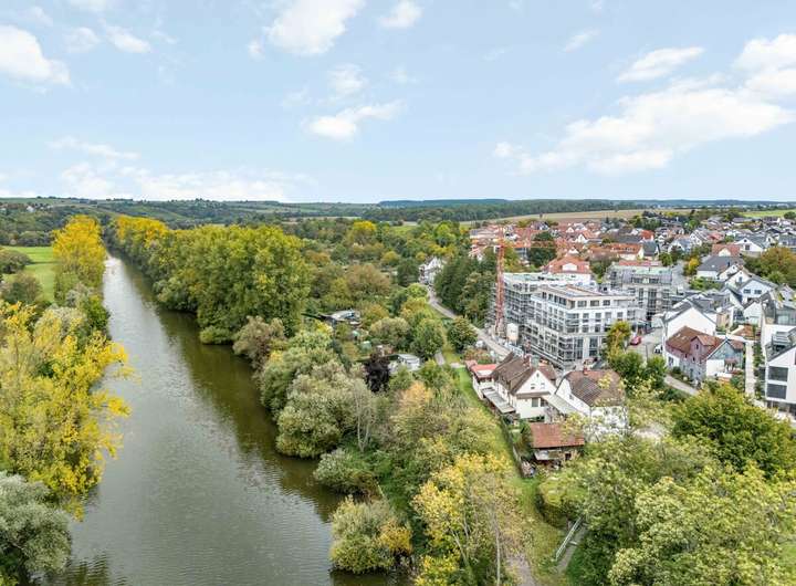 Diese moderne 3-Zimmer-Wohnung verbindet Ruhe, Natur und hochwertigen Wohnkomfort auf besondere Weise. In direkter Kocherlage und angrenzend an ein Naturschutzgebiet entsteht ein Zuhause, das schon beim Betreten ein Gefühl von Leichtigkeit vermittelt. Die ca. 90,88 m² große Wohnung empfängt Sie mit luftigen Deckenhöhen, überhohen Türen und bodentiefen Fenstern, die den Wohn- und Essbereich in warmes Licht tauchen. Der offene Grundriss schafft ein harmonisches Zusammenspiel aus Küche, Essen und Wohnen – ideal für Momente des Zusammenseins.