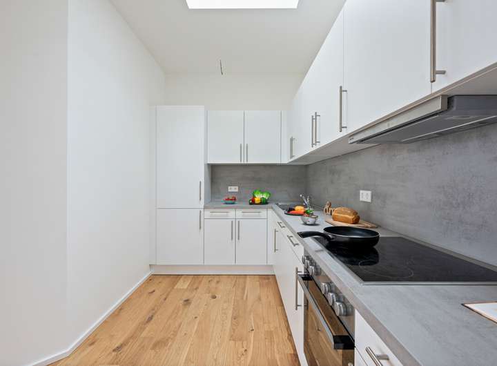 Die hochwertige Einbauküche inklusive Elektroeinbaugeräten ist bereits mit 65€ in der Gesamtmiete berücksichtigt.