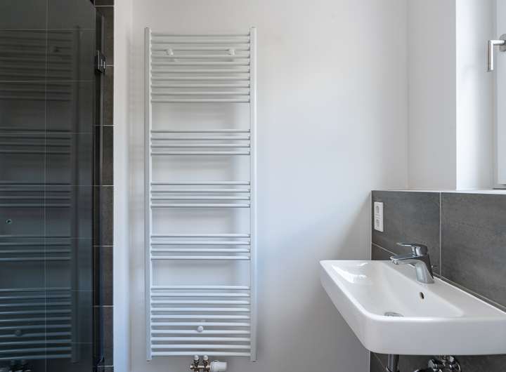 Im Inneren bieten moderne Ausstattungsdetails ein hochwertiges Wohnerlebnis. Die Einheit verfügt über eine ansprechende Einbauküche nebst Elektrogeräten sowie einer Fußbodenheizung. Die tagesbelichteten, modern gefliesten Bäder verfügen über eine Badewanne und/oder eine bodenerdige Dusche mit Glastrennwand sowie einem Handtuchheizkörper. Der Wohnbereich ist mit Eichenparkett ausgelegt und sorgt mit seinen großen Fenstern für eine helle und offene Atmosphäre.