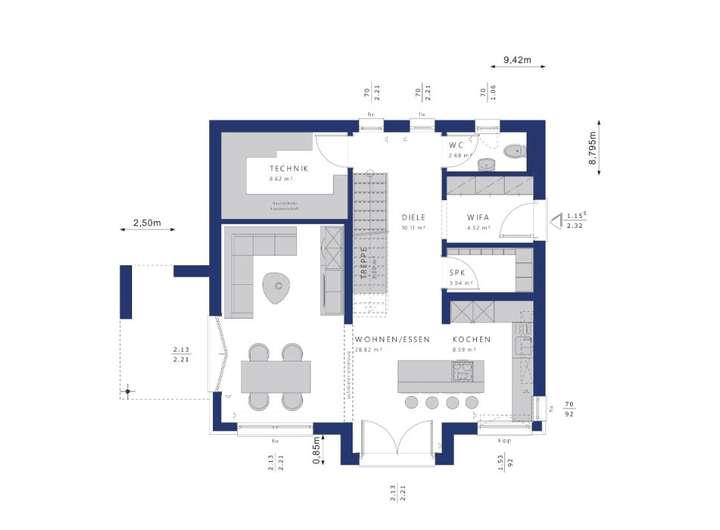 Ausführung als Effizienzhaus 55, nach Ihrer Wahl selbstverständlich auch als Effizienzhaus 40 oder 40 plus,