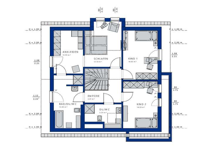 Das Haus verfügt über mehrere liebevoll gestaltete Schlafzimmer, die genügend Raum für alle Familienmitglieder bieten. Jedes Zimmer kann nach den individuellen Wünschen und Bedürfnissen gestaltet werden und bietet einen Rückzugsort zum Ausruhen und Träumen.