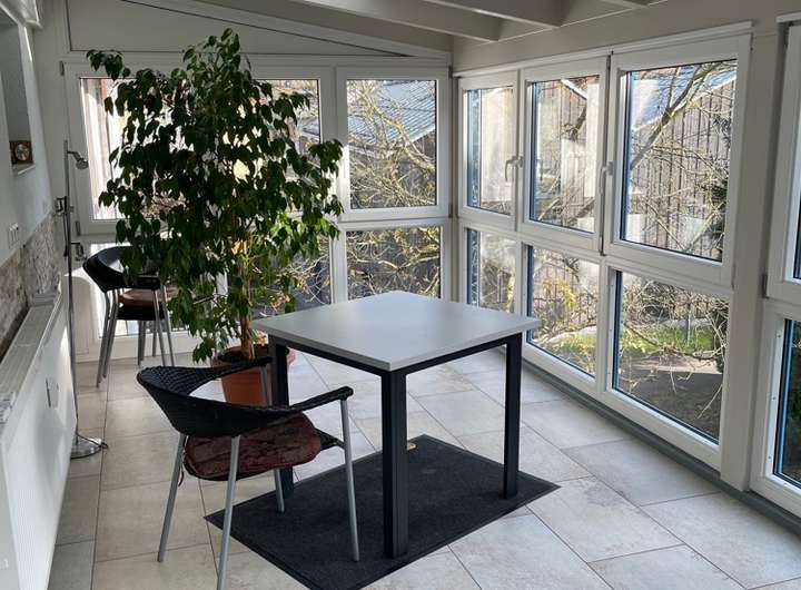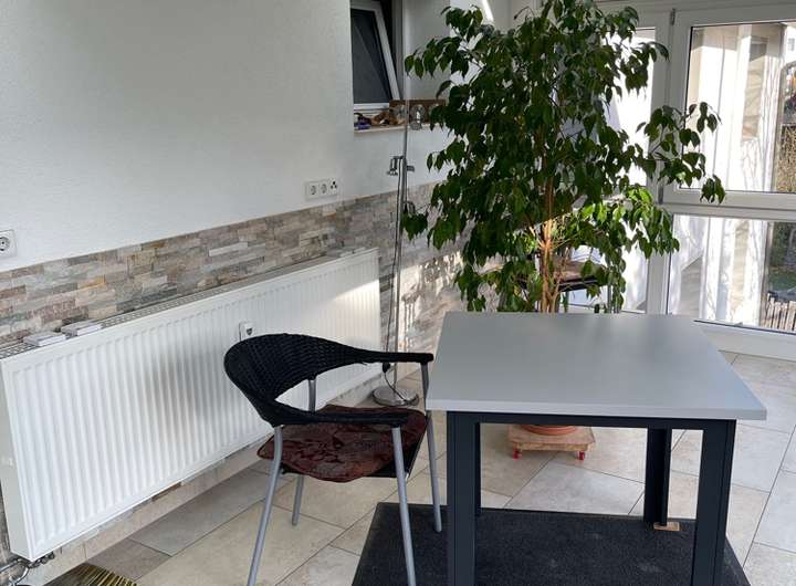 Die Wohnung hat in jedem Raum einen hochwertigen Laminat und Fliesenboden. Der Wintergarten hat elektrisch betriebene Rollläden für die Dachfenster. Die Küche wurde vor wenigen Jahren komplett neu gemacht. Ein Kellerraum gehört zur Wohnung ebenso wie ein Parkplatz für den Pkw dazu.