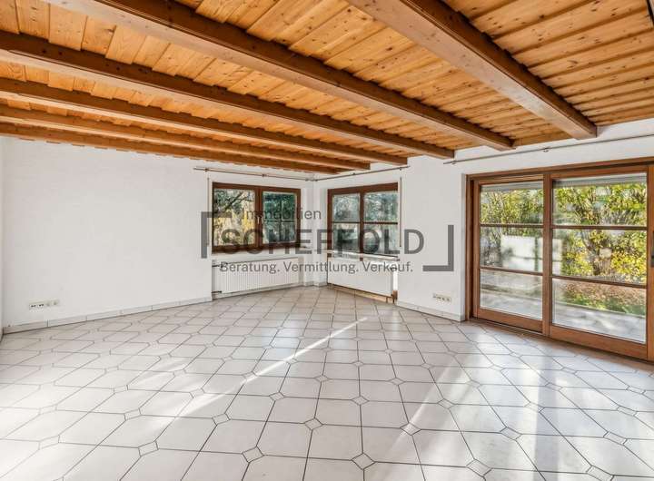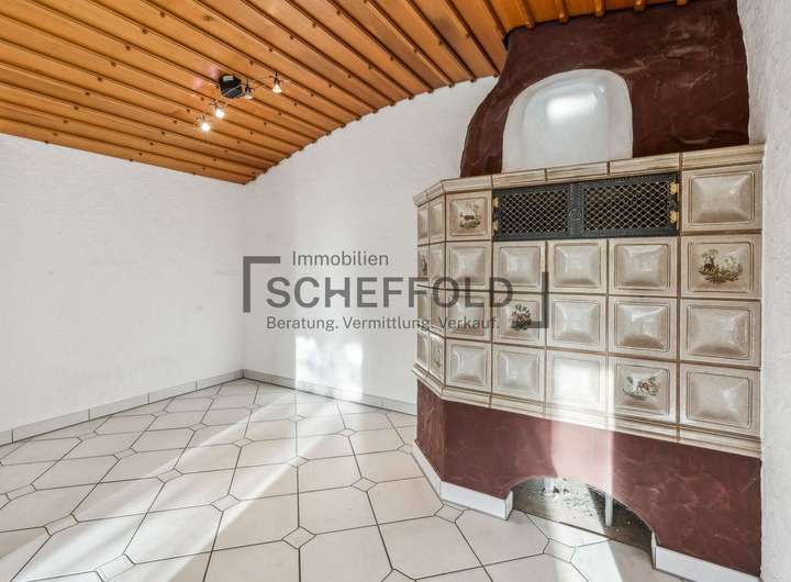 Das Herzstück des Hauses bildet der lichtdurchflutete Wohn- und Essbereich, der mit seiner Großzügigkeit und Helligkeit begeistert. Große Fensterfronten sorgen für ein angenehmes Raumgefühl und öffnen den Blick auf die Terrasse und den pflegeleicht gestalteten Garten – ein perfekter Ort, um sonnige Stunden im Freien zu genießen. Ein gemütlicher Kachelofen in einer separaten Nische spendet in der kühleren Jahreszeit wohlige Wärme und sorgt für ein besonders heimeliges Ambiente. Bitte beachten Sie, dass der Kachelofen aktuell nicht betrieben werden darf.