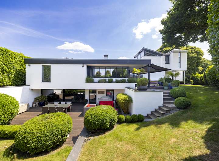 Zeitlose Villa in Rheinnähe mit außergewöhnlicher Architektur und Weitblick