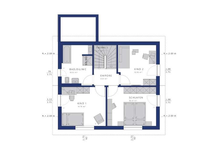 Die dargestellte Raumaufteilung ist nur beispielhaft.