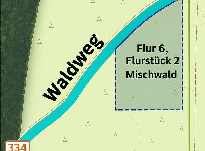 Zuwegung über Waldweg, vermutlich von ‚An der Trift‘. Lage: Flur 6 / Flurstück 2.