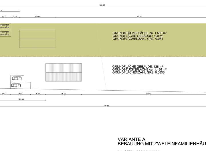 Eine Bauvoranfrage für zwei Einfamilienhäuser mit jeweils ca. 200m² Wohnfläche oder eine größere Villa ist bereits eingereicht. Als Architektin unterstütze ich Sie sehr gerne in der ersten Phase Ihrer Planungsideen im Rahmen der Maklertätigkeit.
