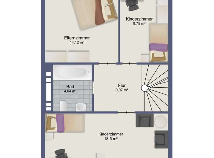 - Zwei Duschbäder (Obergeschoss und Dachgeschoss)