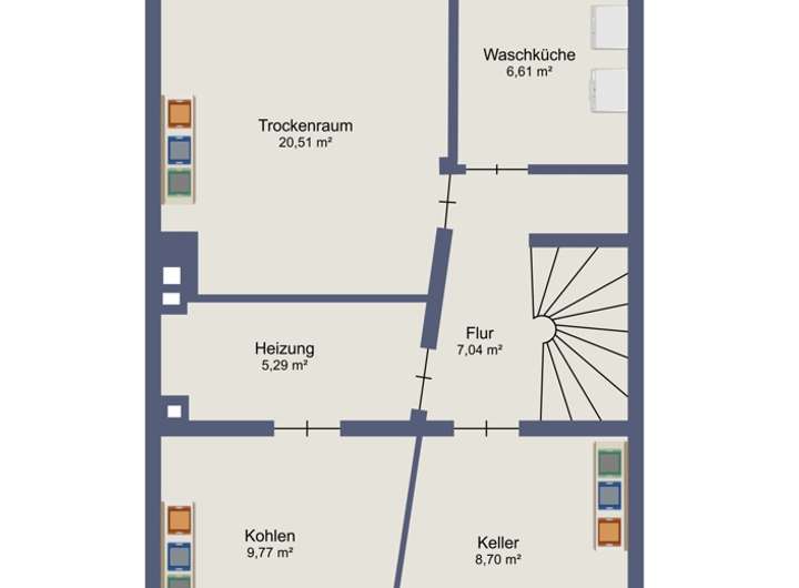Der Vollkeller bietet mit insgesamt vier Räumen reichlich Nutzfläche. Neben einem Hauswirtschaftsraum befindet sich hier ein großer, beheizter Hobbyraum, der vielfältige Nutzungsmöglichkeiten eröffnet.