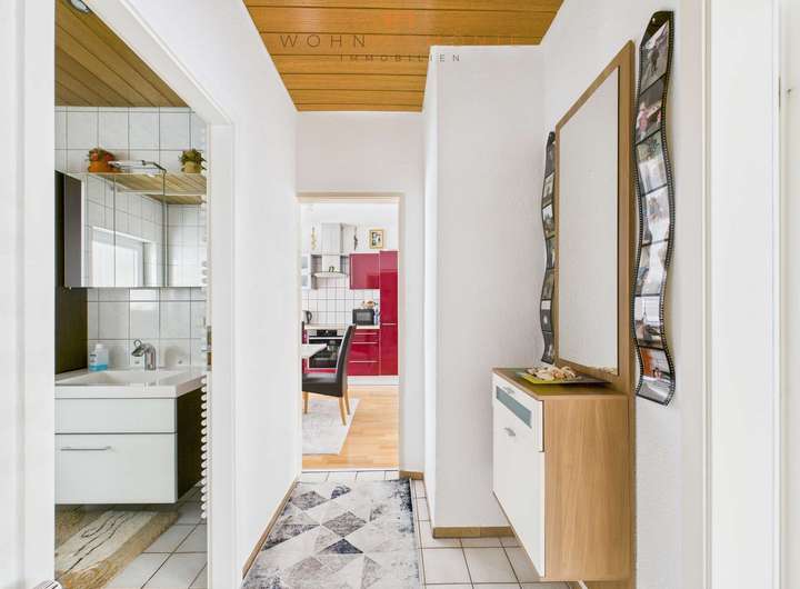 Die Dachgeschosswohnung bietet einen besonderen Mehrwert: Ihr steht der angrenzende Dachboden zur Verfügung, der wahlweise als Abstellfläche genutzt oder nach Bedarf weiter ausgebaut werden kann.