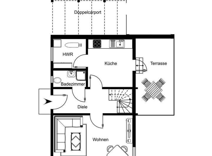 Abgerundet wird dieses Angebot durch ein Doppelcarport mit Platz für zwei Fahrzeuge. Ein Dachboden bieten weitere Fläche zum Verstauen.