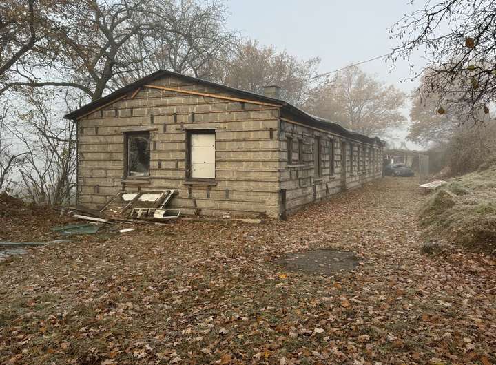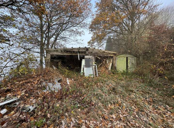 Die alte Bebauung einer Schreinerei ist auf dem Grundstück noch vorhanden. Die Asbestverkleidung der Außenwände wurde fachgerecht entsorgt, der übrigen Bau ist sanierungsbedürftig bis abbruchreif.