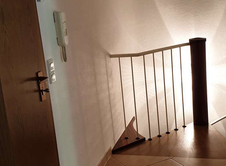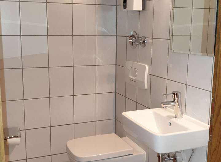 Im Erdgeschoß befinden sich die Wohnküche und die Gästetoilette, im Souterrain das Schlafzimmer, das Bad mit Dusche und ein Abstellraum.