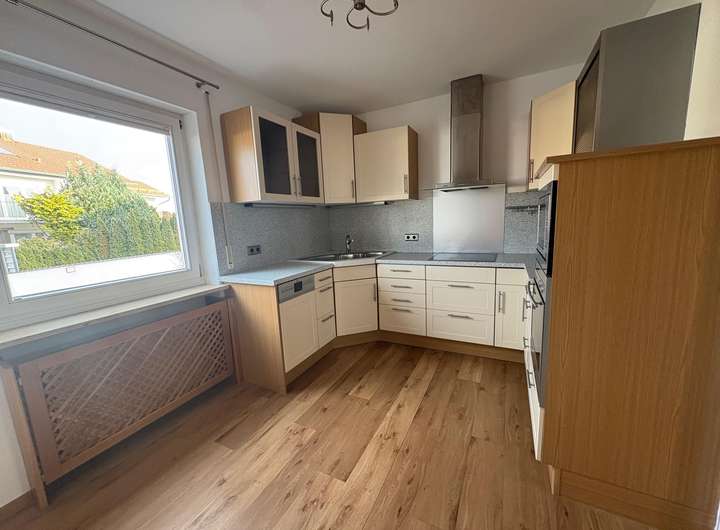 Die Einbauküche ist voll ausgestattet und lädt zu gemeinsamen Kochabenden ein. Angrenzend befindet sich ein offener Wohnbereich, der zum Entspannen und Verweilen einlädt.