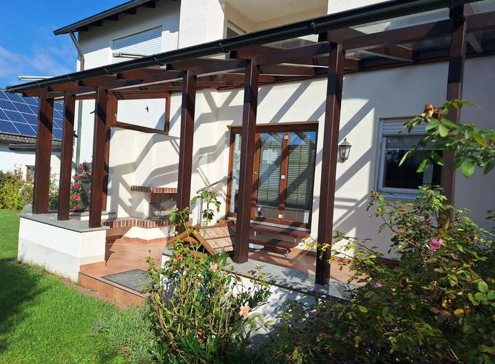 Das Haus verfügt über einen schönen Garten, der ausreichend Platz für Spiel, Freizeit und Gartenarbeit bietet. Besonders hervorzuheben ist die überdachte Terrasse, auf der man wetterunabhängig entspannte Stunden im Freien genießen kann.
