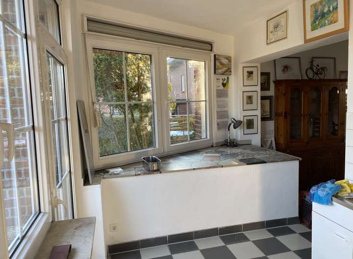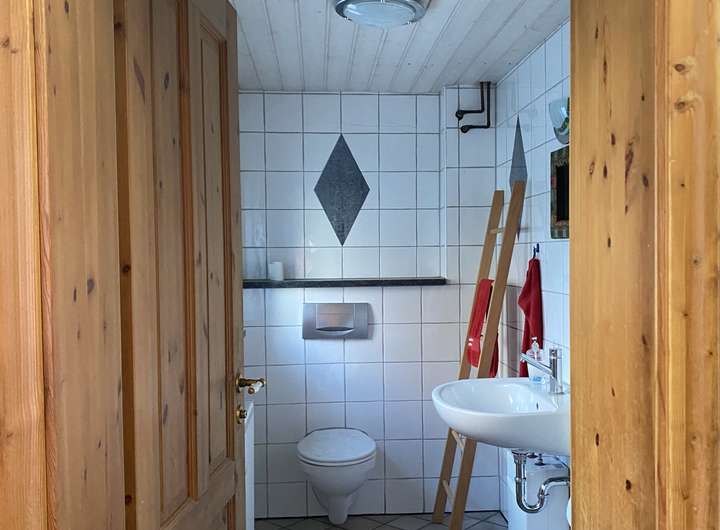 Küche, Wohnzimmer, Gäste-WC im Erdgeschoss.