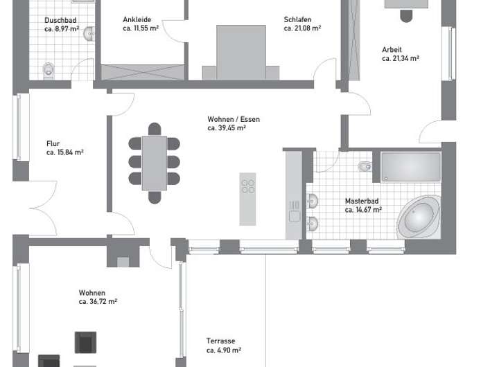 - Wohnfläche Erdgeschoss: 174,52 m²