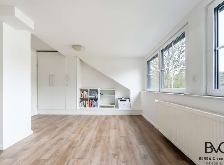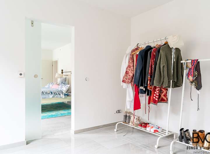 Die Wohneinheit im Obergeschoss eignet sich hervorragend für eine kleine Familie, eine Einzelperson, als großzügiger Homeoffice-Bereich oder zur Unterbringung von Hilfspersonal. Ebenso bietet sie sich für eine langfristige Vermietung an – mit attraktiver Rendite und der Möglichkeit, die Finanzierung bzw. Tilgung des Hauses spürbar zu unterstützen. Die Einheit verfügt über einen eigenen Strom- und Wasserkreise, sodass Verbrauch und Kosten sauber getrennt abgerechnet werden können.
