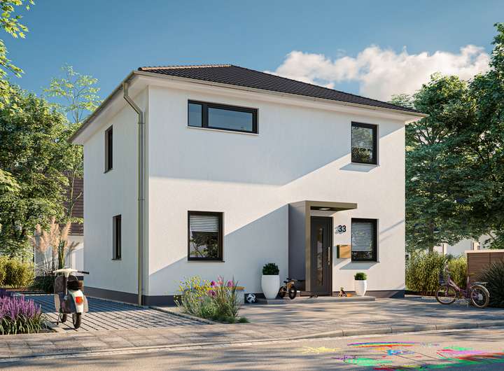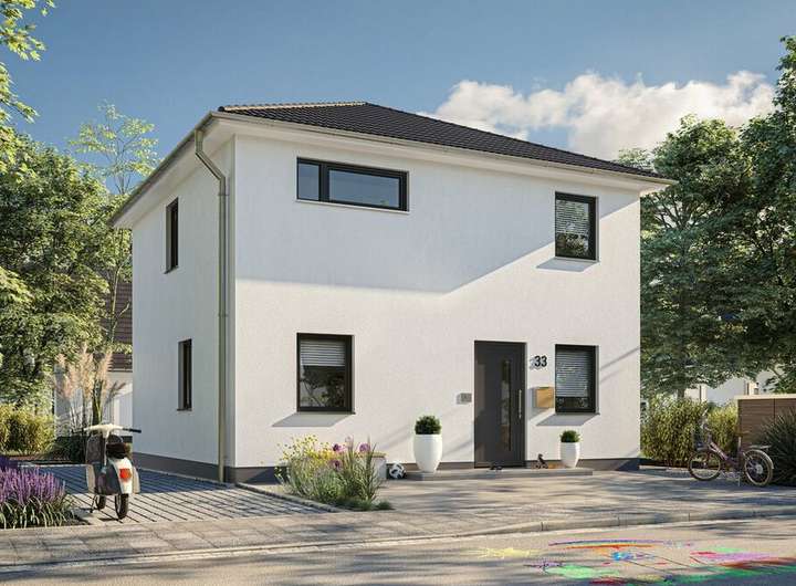 Der Preis bezieht sich auf ein schlüsselfertiges, massives Einfamilienhaus für € 254.200,- Euro und ein beispielhaftes Grundstück für 76.300,- zuzüglich der üblichen Kauf- und Baunebenkosten.