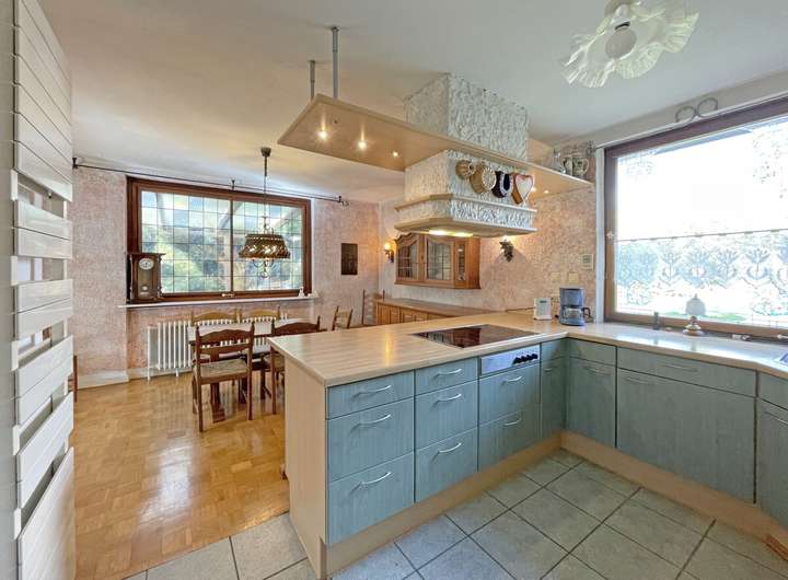 Diese solide Immobilie bietet eine zeitgemäß ausgestattete Einbauküche mit offener Gestaltung, die sowohl funktional als auch optimal dem angrenzenden Wohn-Essbereich angeschlossen ist. Der Kamin im Wohnbereich sorgt für wohlige Wärme und eine einladende Atmosphäre, insbesondere an kälteren Tagen. Die großzügigen Terrassen, teilweise überdacht, erweitert den Wohnbereich nach draußen und laden gemeinsam mit den zahlreichen Sitzplätzen auf dem Grundstück zu entspannten Stunden im Freien ein. Die Zentralheizung (BJ 2022), betrieben mit umweltfreundlichem Pelletsystem, sichert eine effiziente und nachhaltige Beheizung der gesamten Räumlichkeiten.