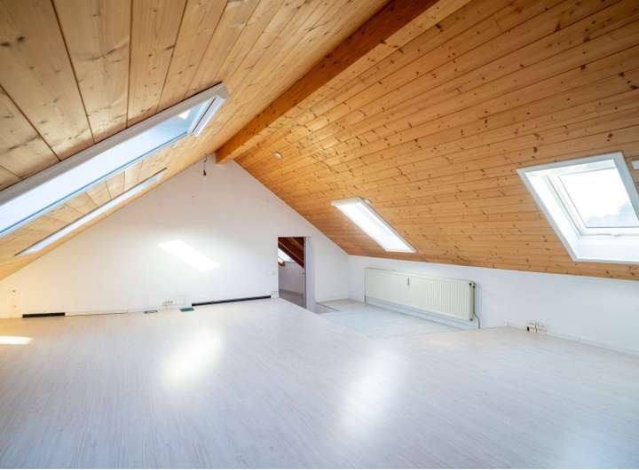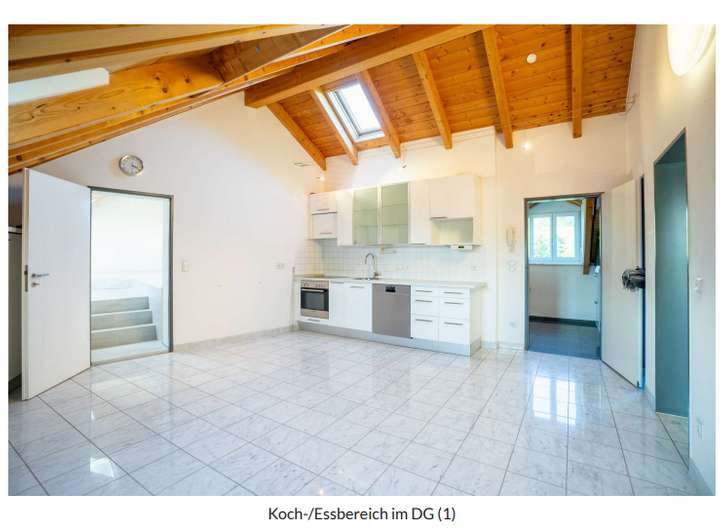 Im Dachgeschoss stehen Ihnen ein offener Koch-/Essbereich, ein großes Schlafzimmer, ein mögliches