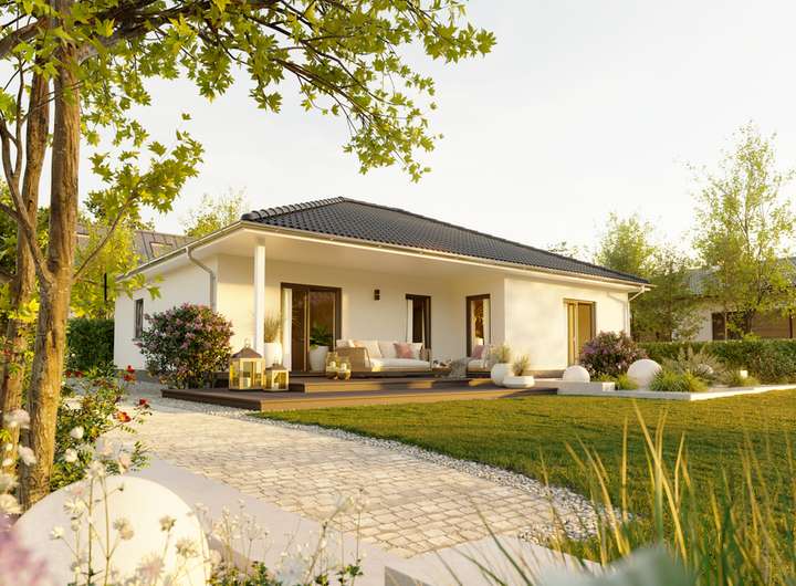 Wohnglück ohne Hindernisse - Dieser Bungalow fällt nicht nur durch sein charmantes Design auf. Die markante Winkelform ermöglicht auch einen variablen Grundriss. Die besondere Raumanordnung des Winkelbungalows 108 sowie die vielen kleinen Details machen das Wohnen für Sie zum Genuss.