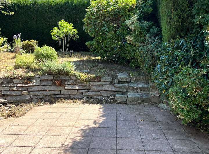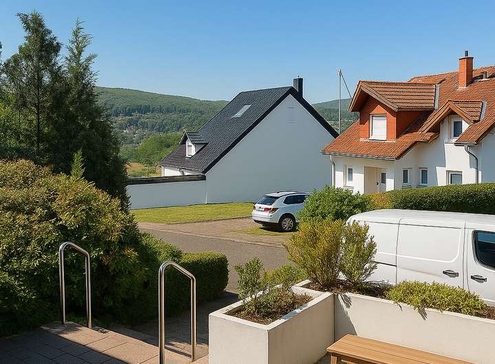 Auch der Außenbereich überzeugt: Ein gepflasterter Zugang mit Hochbeeten und gepflegten Grünflächen führt zum Haus und unterstreicht den gepflegten Gesamteindruck. Die erhöhte Lage bietet nicht nur Privatsphäre, sondern auch einen traumhaften Fernblick auf die umliegenden Hügel und Natur. Ein schöner Garten mit großzügiger Terrasse lädt zusätzlich zum Verweilen und für genügend individuelle Gestaltung ein.