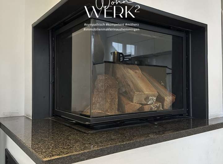 Im Erdgeschoss empfängt ein großzügiger Eingangsbereich, der sofort Offenheit und Weite vermittelt. Von hier aus öffnet sich der helle Wohn- und Essbereich mit Kamin – ein Ort zum Wohlfühlen und Verweilen. Große, bodentiefe Fenster schaffen eine lichtdurchflutete Atmosphäre und geben den Blick auf den Garten frei.