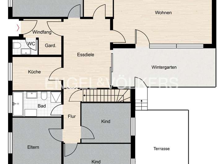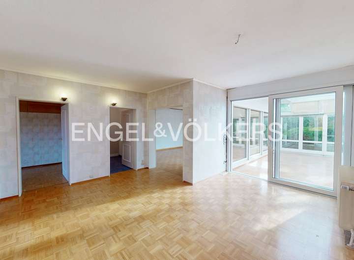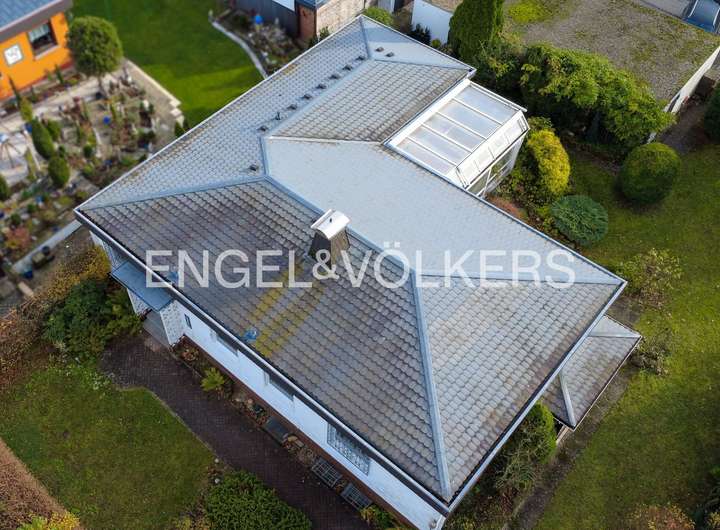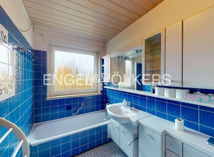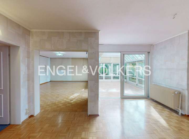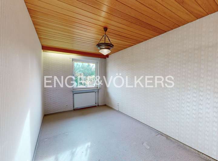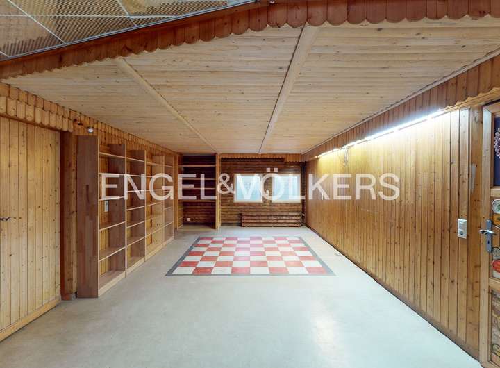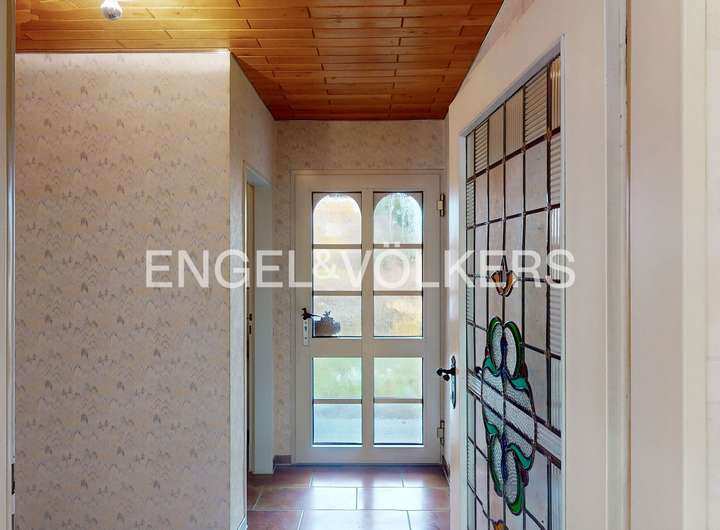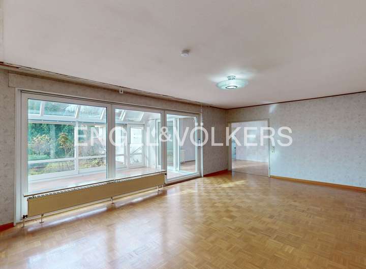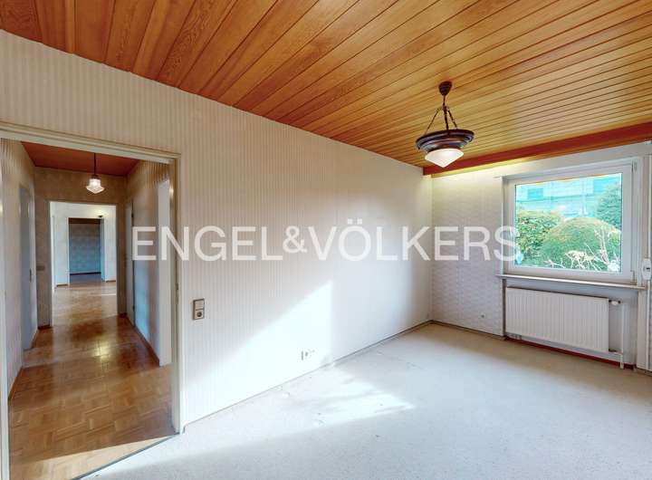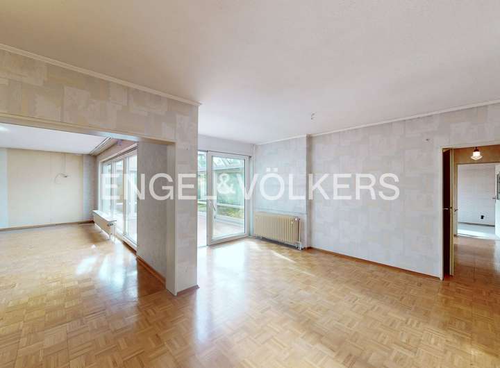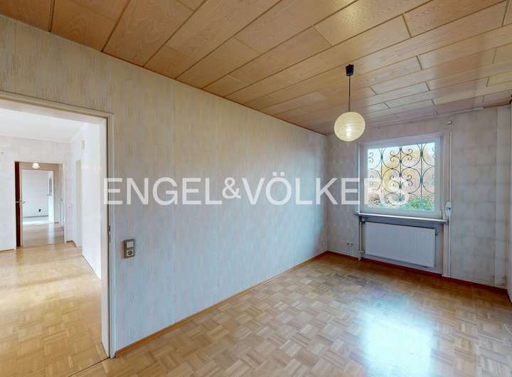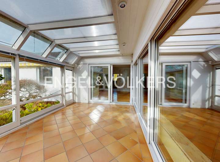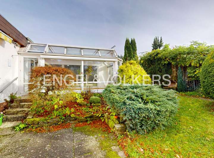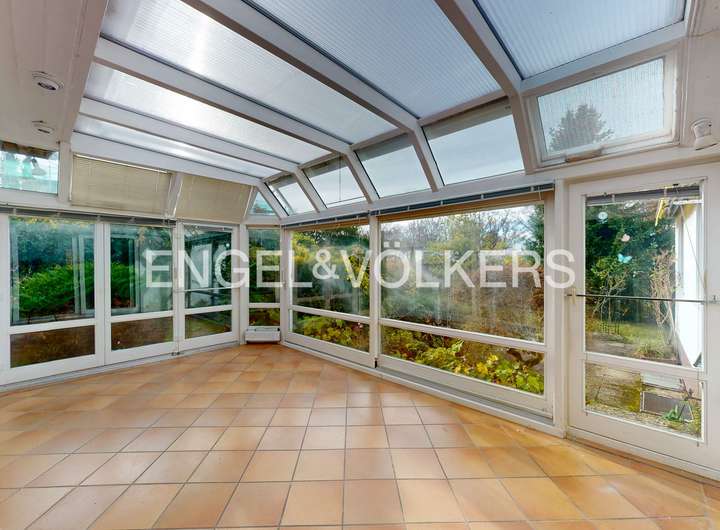 Der Grundriss überzeugt durch eine offene Essdiele, die fließend in den großzügigen Wohnbereich übergeht, sowie durch den 1991 angebauten, beheizten Wintergarten mit einer Fläche von knapp 20 qm. Dieser lichtdurchflutete Raum schafft eine wunderbare Verbindung zwischen Innen und Außen und bietet zu jeder Jahreszeit einen herrlichen Blick ins Grüne. Das Kellergeschoss ergänzt das Wohnangebot um einen großen, vielseitig nutzbaren Hobbyraum mit direktem Gartenzugang sowie um weitere praktische Nutz- und Abstellräume.
