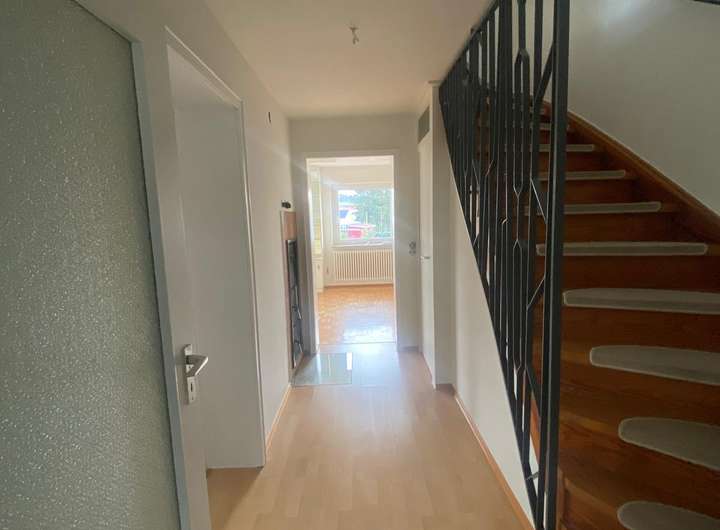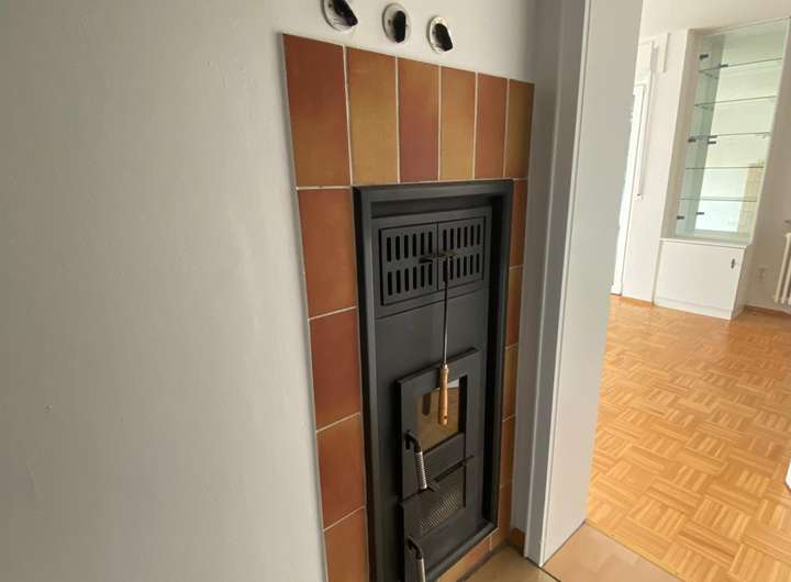 Erdgeschoss: Eingangsbereich mit großen Einbauschrank, vollwertiges Tageslichtbad mit begehbarer Dusche, weiterer Flurbereich mit Treppenaufgang und Zugang zu Küche mit Einbauküche und zwei Kühlschränken, Wohnzimmer und Keller sowie Befeuerung des Kachelofens. Großes Wohnzimmer mit knapp 22 qm und schöner Südbalkon.