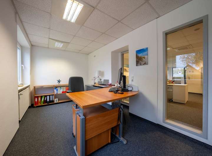 Die vermietbare Fläche beträgt ca. 211 m², die Gesamtfläche ca. 321 m². Auf dem Gelände stehen 8 Außenstellplätze zur Verfügung – ein wertvoller Standortvorteil. Die Immobilie verfügt über eine Gas-Zentralheizung aus 2016/2017.