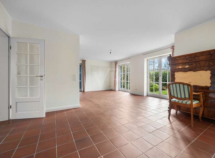 Schon beim Betreten spürt man die besondere Atmosphäre dieses Hauses: Der großzügige Wohn- und Essbereich mit Kamin und großen Fensterfronten sorgt für eine warme, einladende Stimmung. Die offene Küche mit hochwertigen Einbaugeräten und angrenzender Speisekammer fügt sich harmonisch in das Wohnkonzept ein. Zwei gemütliche Bäder, eines davon mit Badewanne, sowie drei individuell nutzbare Schlafzimmer bieten Raum für verschiedene Wohnideen. Ein besonderes Detail ist die praktische Wäscherutsche, die das Badezimmer direkt mit dem Hauswirtschaftsraum verbindet und den Alltag erleichtert.