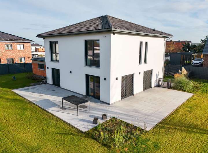 Diese moderne Stadtvilla in Massivbauweise verbindet zeitgemäße Architektur, exklusive Ausstattung und umfassende Smart-Home-Technologie zu einem Zuhause, das höchsten Wohnkomfort bietet. Das im Jahr 2024 fertiggestellte Haus umfasst ca. 156,82 m² Wohnfläche auf einem ca. 1.035,00 m² großen Grundstück und präsentiert sich bezugsfertig in ruhiger Lage von Bülstringen.