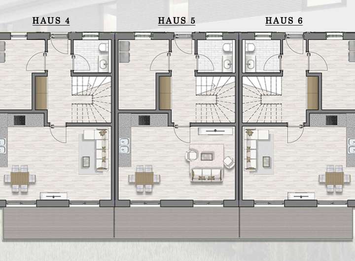 Diese neu gebauten Reihenhäuser bieten modernen Wohnkomfort in einem familienfreundlichen Umfeld und höchsten Ansprüche an Raumgestaltung und Lebensqualität.