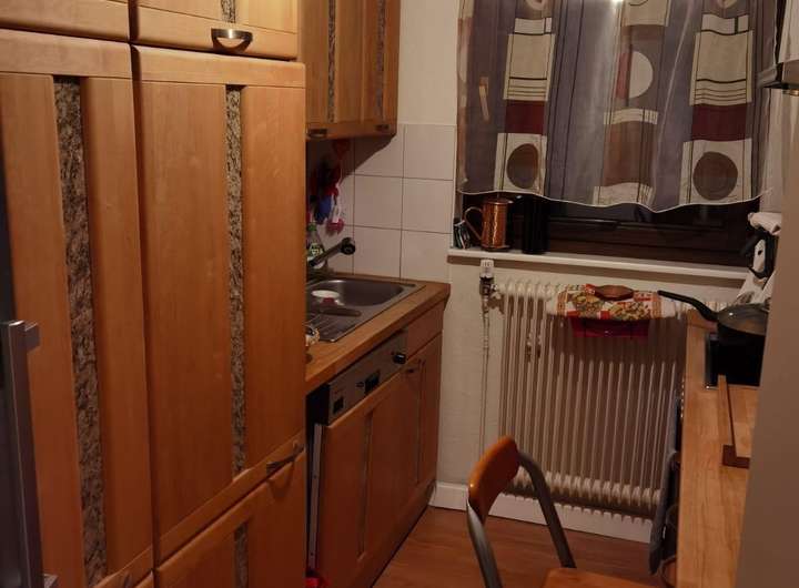 Die Wohnfläche von insgesamt ca. 72 m² der vermieteten Wohnung im 1. Obergeschoss beinhaltet die folgenden Räume: einen Flur, ein Bad, mit Badewanne, WC und Waschbecken eine Küche, ein Schlafzimmer, ein Wohnzimmer, welches ebenfalls einen Kamin aufweist und ein weiteres Zimmer, das als Kinderzimmer dienen kann. Dieses Zimmer ist auch vom Hausflur aus begehbar und kann dadurch ebenfalls gut als separat zugängliches Büro genutzt werden.