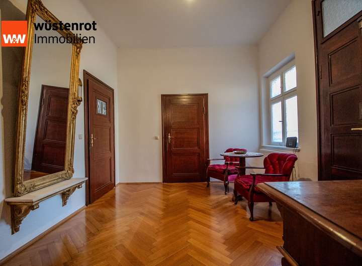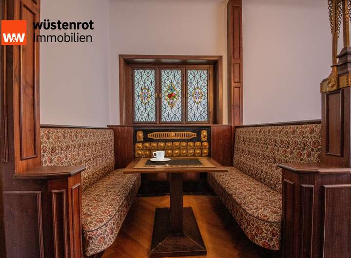 Die Wohnung beeindruckt durch hohe Decken (ca. 3,40 m), historische Elemente und viel Platz für individuelles Wohnen. Die lichtdurchfluteten Zimmer besitzen gepflegte Parkettböden im Fischgrätenmuster, sowie originale Holzelemente. Ein besonderes Highlight ist die gemütliche, denkmalgeschützte Sitzecke mit Bleiglasfenster im Wohnbereich.
