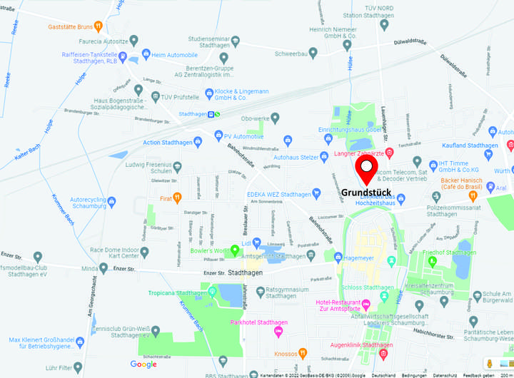 Ca. 1,8 km zum Bahnhof und keine 750 m in die Stadthäger Altstadt mit der belebten Fußgängerzone, dem Schloss sowie dem historischen Marktplatz.