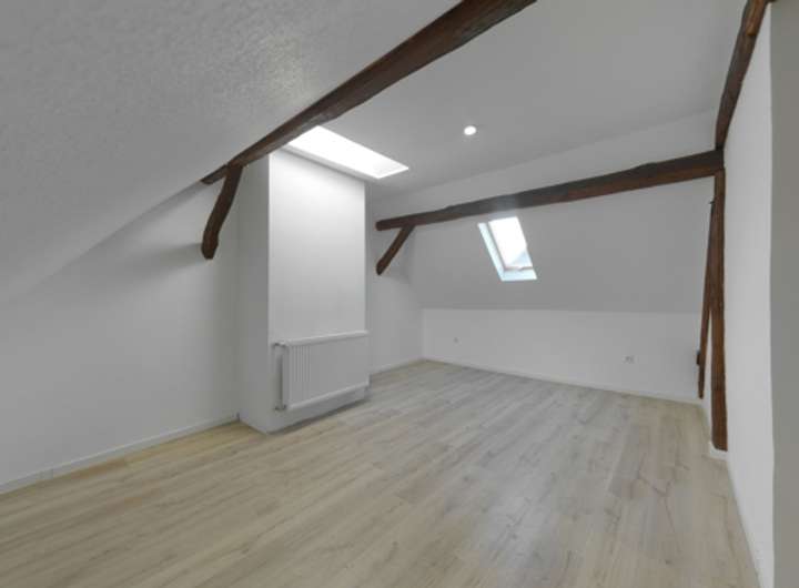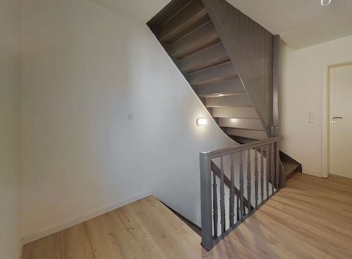 Im Erdgeschoss befindet sich außerdem ein modernes Badezimmer mit Badewanne und separater Dusche. Ein weiteres hochwertig ausgestattetes Badezimmer im Obergeschoss sorgt für zusätzlichen Komfort. Die flexibel nutzbaren fünf Zimmer eignen sich ideal als Schlafzimmer, Büro oder Gästezimmer. Im Obergeschoss befinden sich zwei helle Schlafzimmer während das Dachgeschoss mit weiteren Zimmern und sichtbaren Holzbalken einen besonderen Charme bieten und zusätzliche Rückzugsmöglichkeiten schaffen.