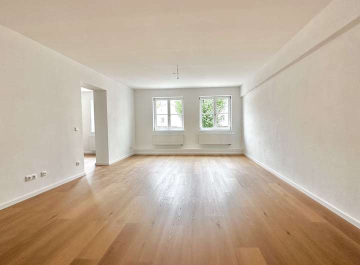 Diese frisch und grundlegend sanierte 3-Zimmer-Wohnung mit knapp 100 m² Wohnfläche begeistert mit ihrem gelungenen Mix aus historischem Altbaucharme und modernem Wohnkomfort. Über eine Treppe gelangen Sie ins erste Obergeschoss eines gepflegten Wohn- und Geschäftshauses mit nur wenigen Parteien – ein angenehmes, ruhiges Wohnumfeld mitten im Ortszentrum.